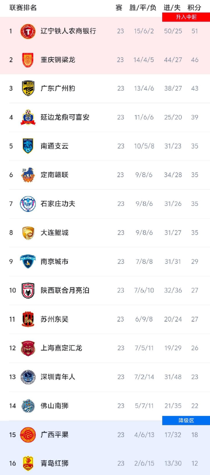 中甲: 广州豹胜铜梁龙分差仅剩3分;辽连德比握手言和