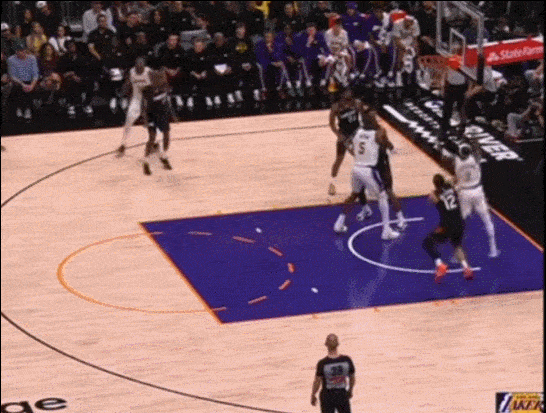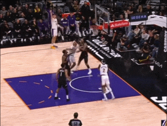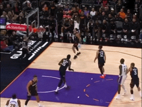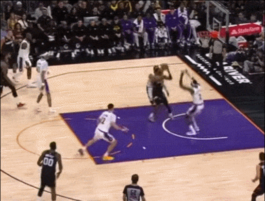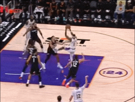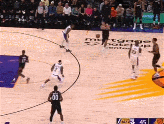 他上去就是防布克 当理查兹掩护后 把他挡在身后 他奋力回追 完成抢断
