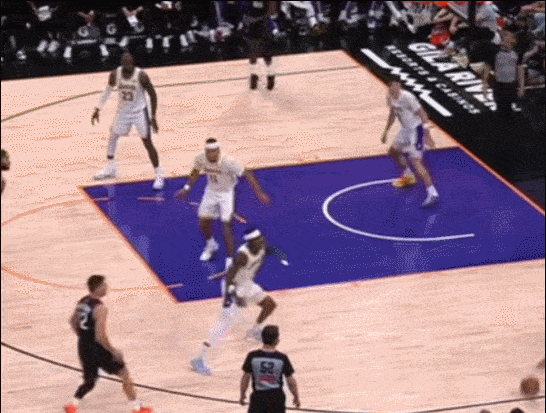 先是防吉莱斯皮 看到阿伦突破 假协防 传球后立马上步完成抢断
