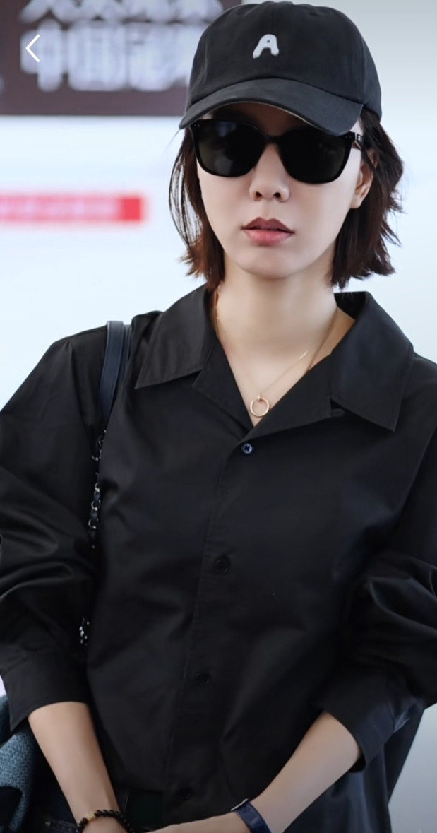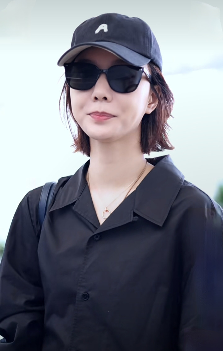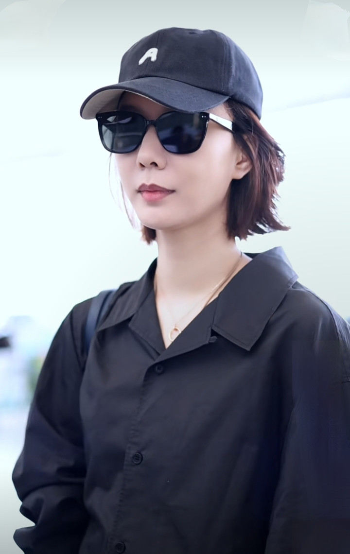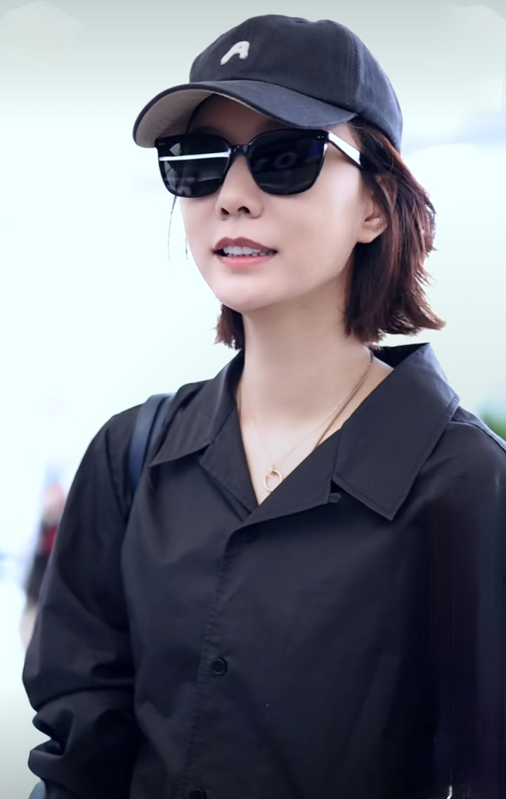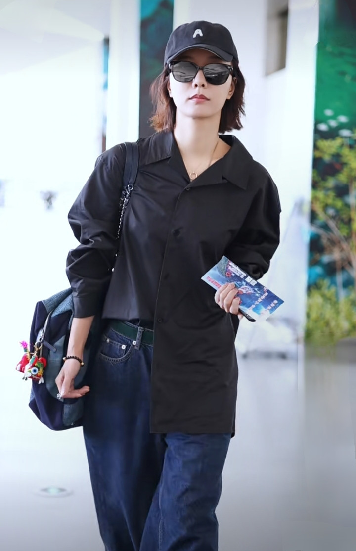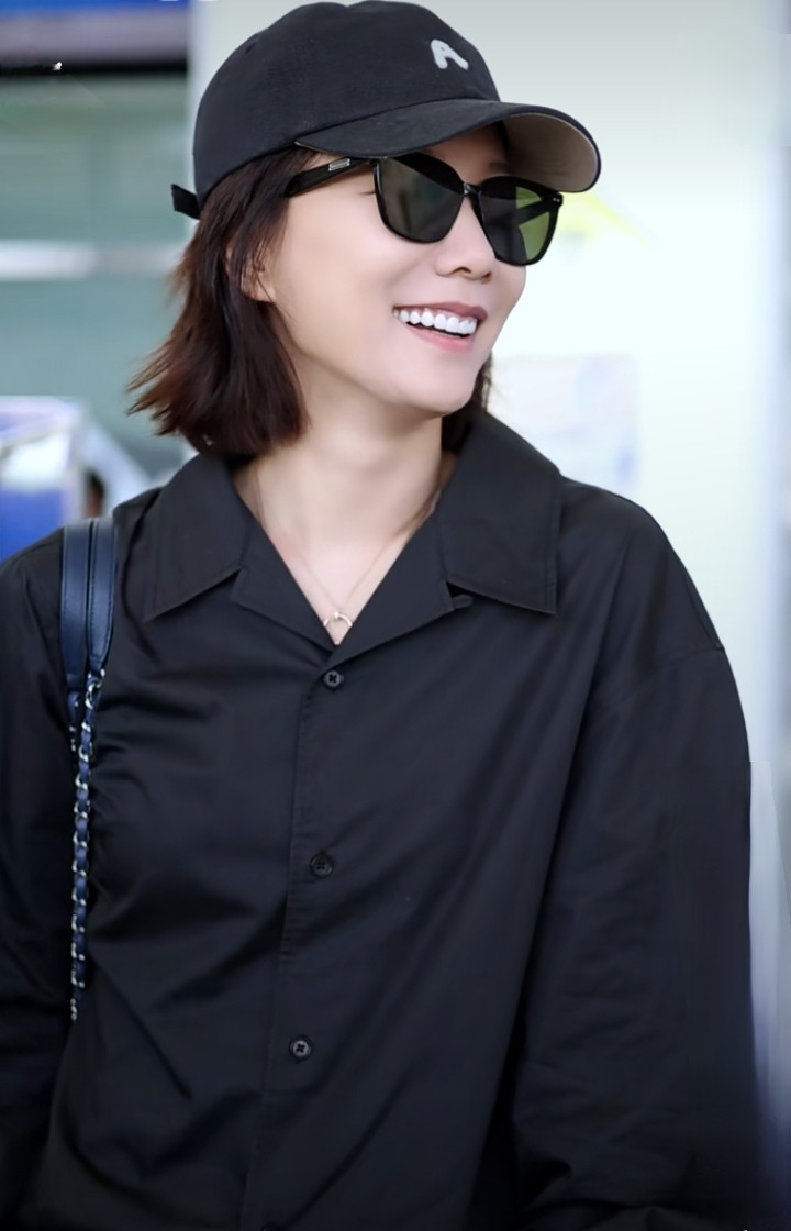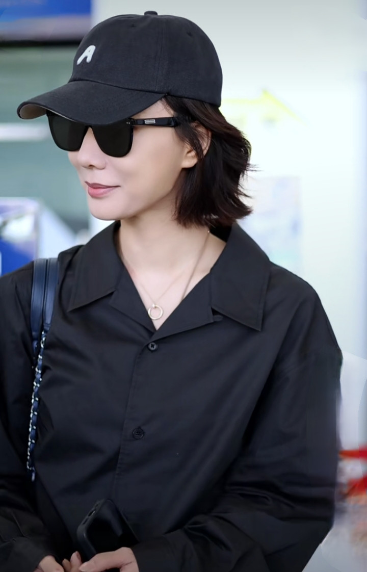 王珞丹现身机场, 黑色衬衫搭棒球帽短发造型尽显清爽气质美到失语