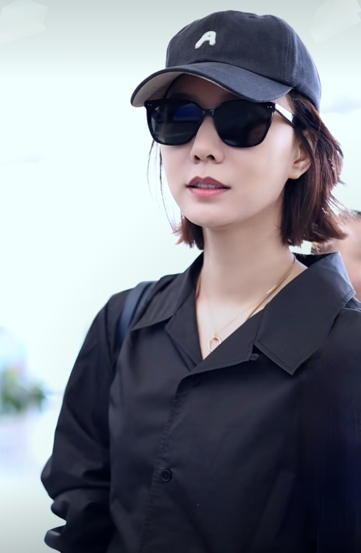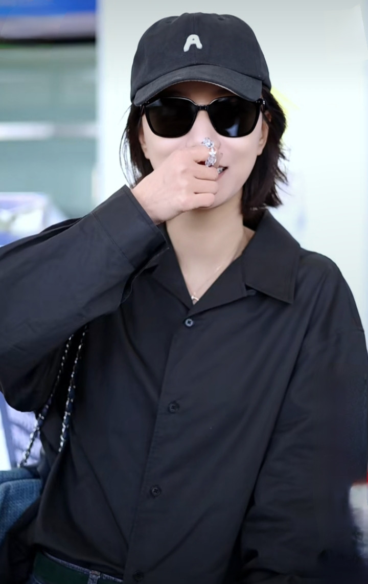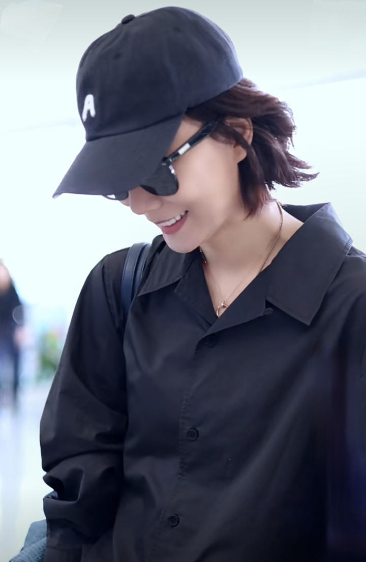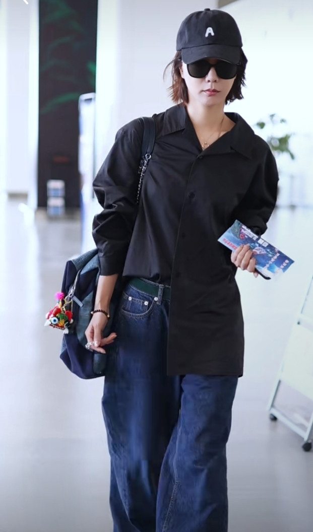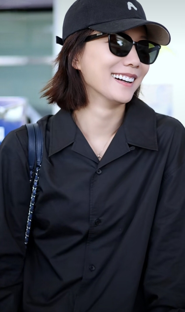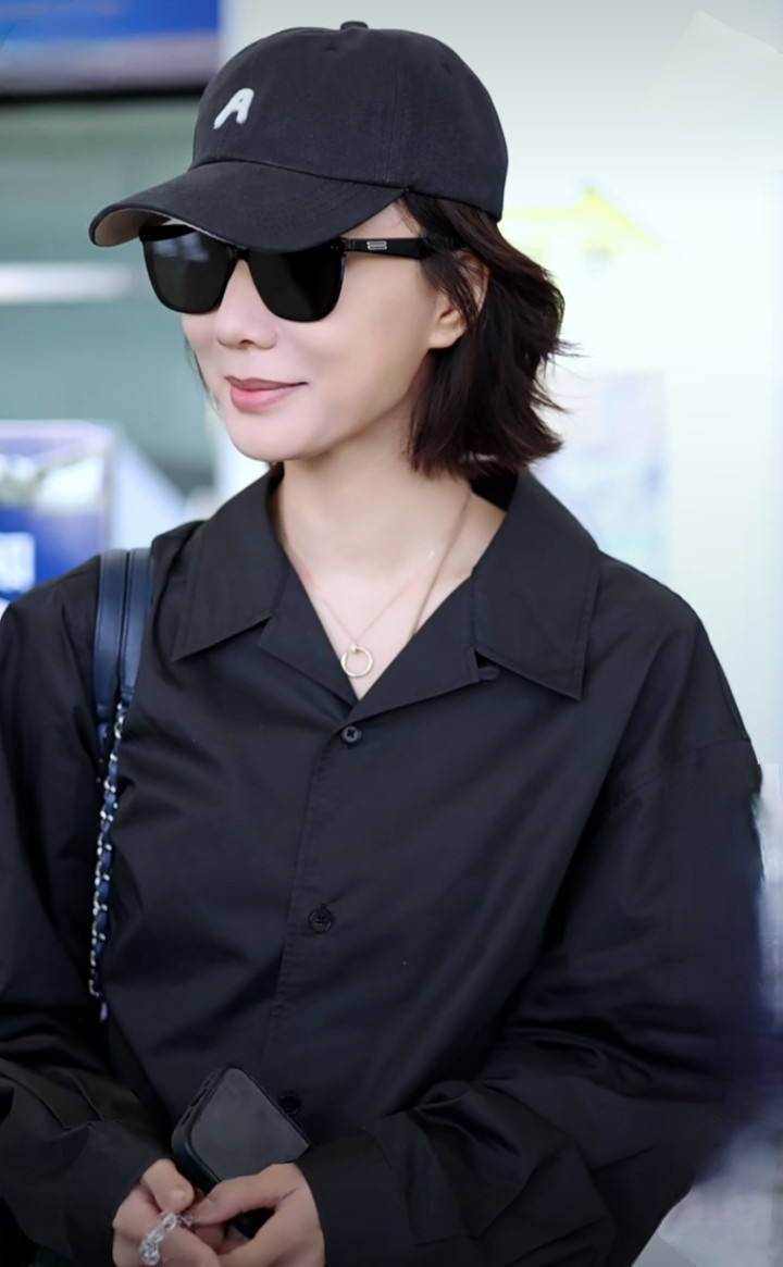 王珞丹现身机场, 黑色衬衫搭棒球帽短发造型尽显清爽气质美到失语