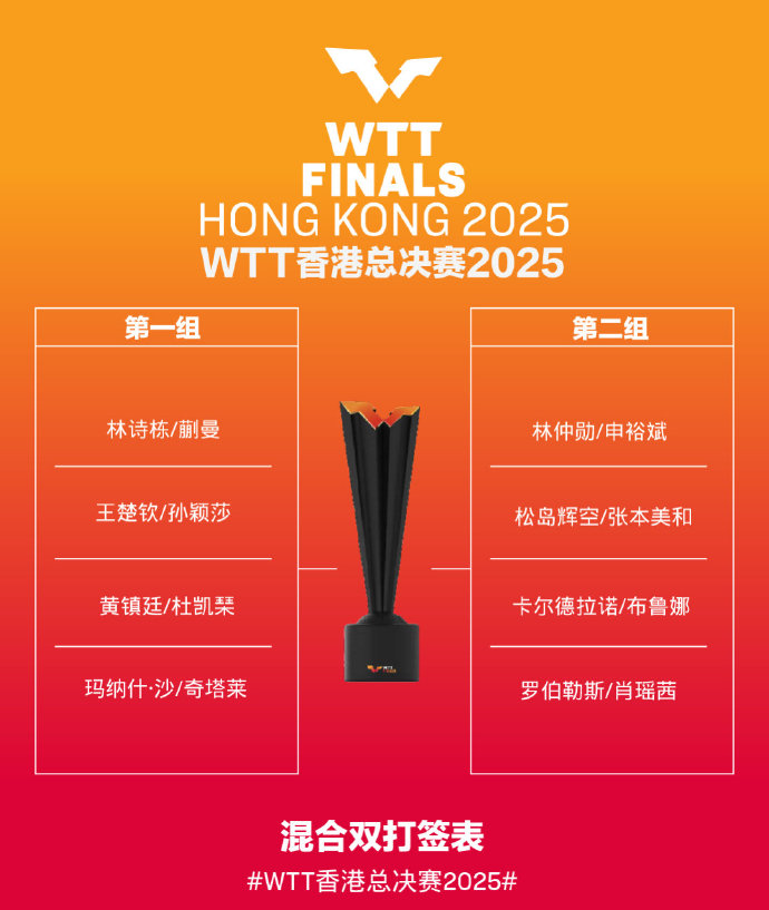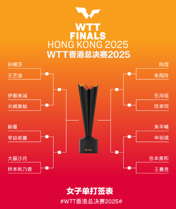 WTT香港总决赛签表公布 孙颖莎王艺迪首轮相遇