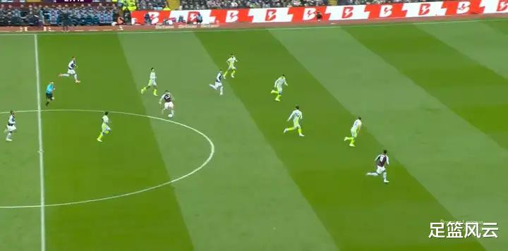 比如上图这个画面,当维拉队打反击的那一瞬间,球队的退防层次感就出现了极其严重的问题。出现了漏人、预判出现错误的情况,谁来盯出球人,谁来拦截,谁又去补防弱侧得位置,球队的防守出现了很大的漏洞。