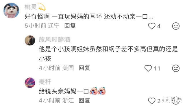 除了连续多次亲妈妈之外,网友还发现了另一个小细节,那就是郭汾阳一直在玩妈妈的耳环,认为很奇怪。