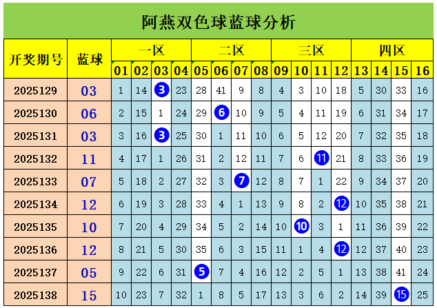 一区:上期开出1个奖号10,在前10期开奖中,该区共开出24个奖号,一区落号较热,本期预测该区落1个奖号,参考号码03